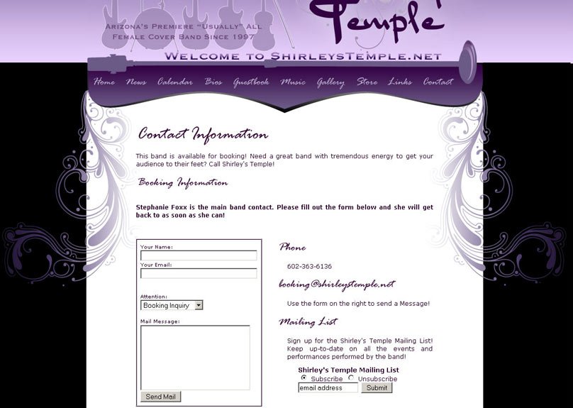 Site design, coding, wordpress, calendar, gallery, photography, videos, contact form, mailing list, site maintenance.