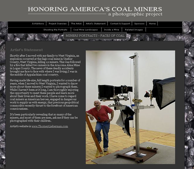 Honoring America’s Coal Miners, a ThorneyLieberman.com project. Moving exhibition featuring life-sized portraits of miners, final pieces are almost seven-feet tall.